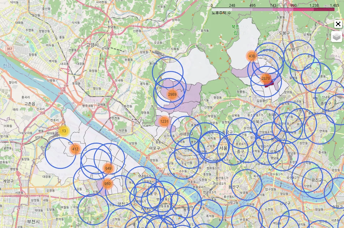 폭염 피해 대처 취약 지역 및 노후 주택 밀집 지역 시각화